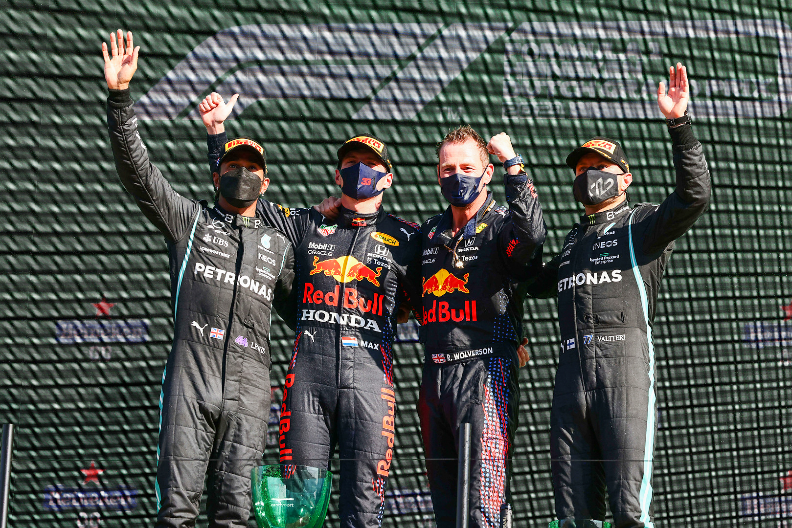 The race took place in front of packed grandstands and a sea of orange, with an incredible atmosphere at Zandvoort. Lewis finished the race in second place, after a hard-fought strategic battle with Max Verstappen at the front of the field. Valtteri crossed the line in third place, to make it a double podium finish for the team.