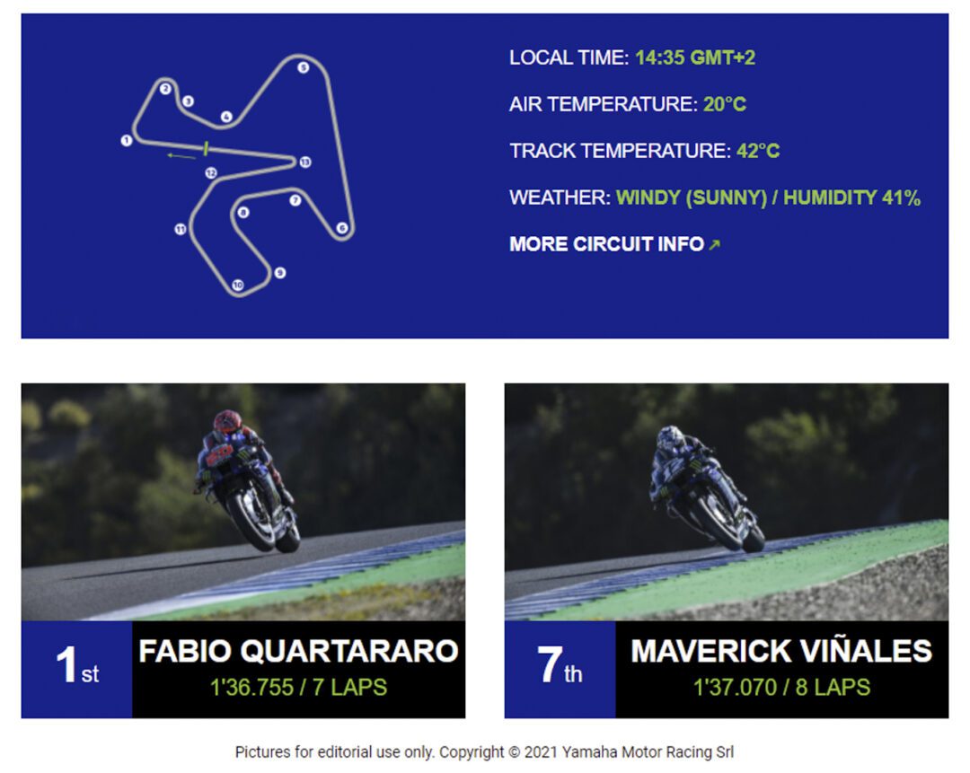 Today, Monster Energy Yamaha MotoGP‘s Fabio Quartararo secured his fourth-consecutive pole position with Yamaha at the Circuito de Jerez – Ángel Nieto. Maverick Viñales booked great progress on the second day in terms of race pace but was unable to put in the hot lap he had in mind in Q2. He ended the session in seventh place.