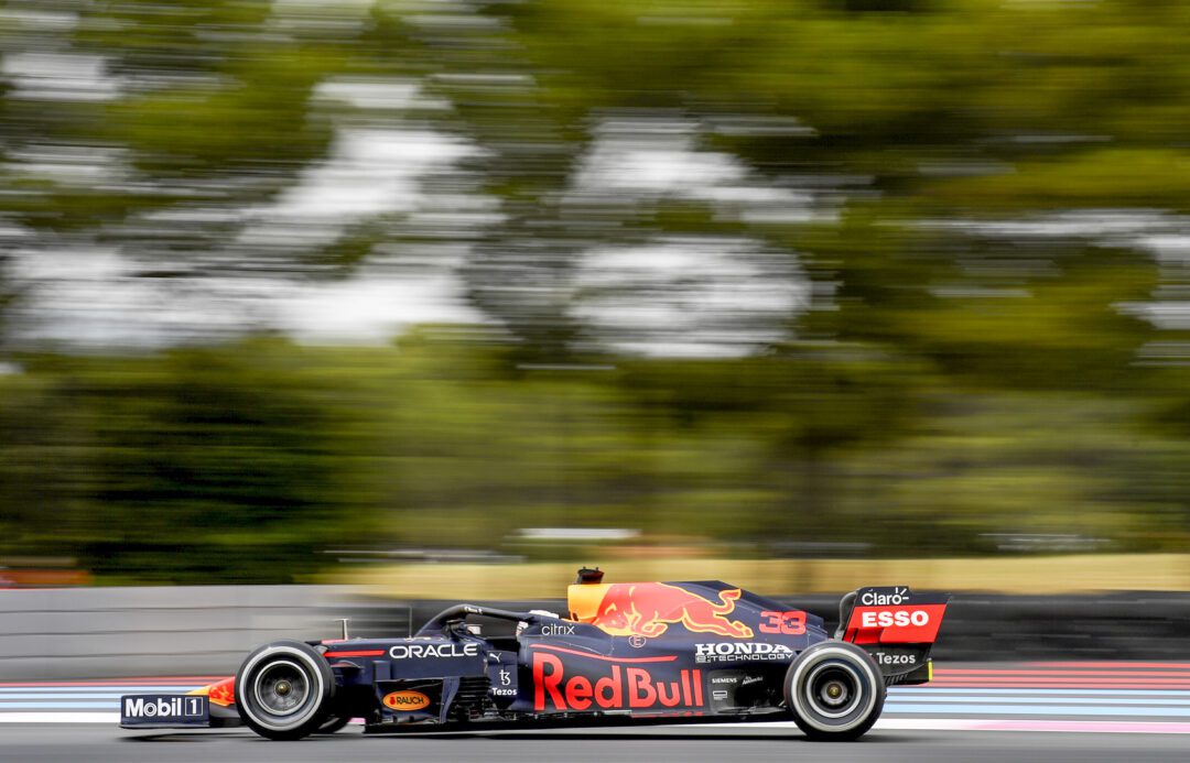 Max Verstappen held his nerve late on to overtake Lewis Hamilton on the penultimate lap and win the French Grand Prix as Red Bull Racing Honda teammate Sergio Pérez also banked a precious podium place.