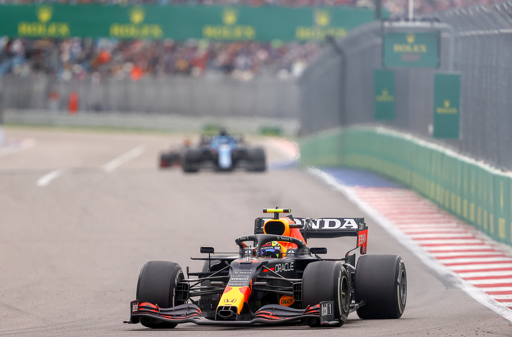 Sergio Perez of Mexico driving the (11) Red Bull Racing RB16B Honda during the F1 Grand Prix of Russia at Sochi Autodrom on September 26, 2021 in Sochi, Russia. (Photo by Bryn Lennon/Getty Images)