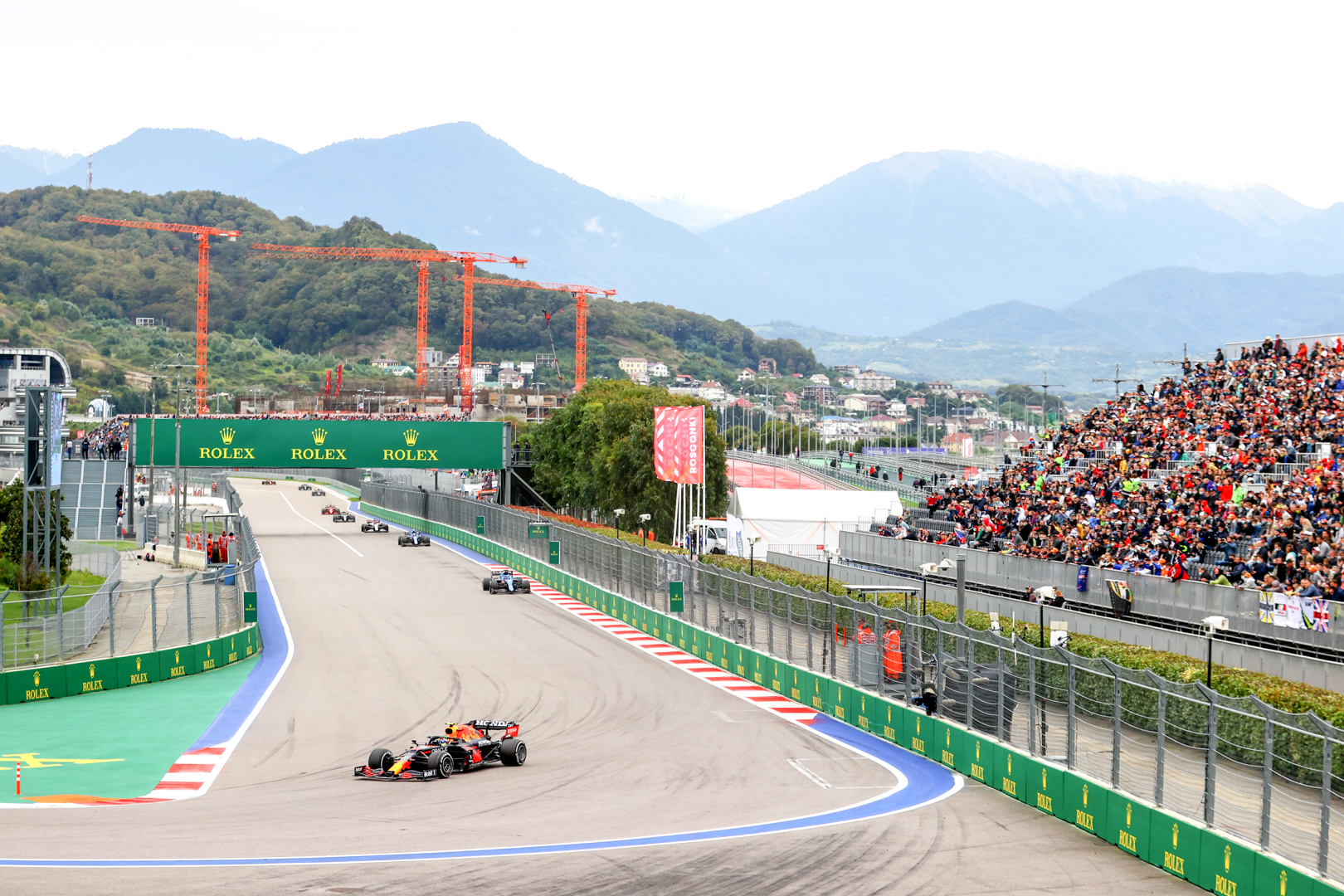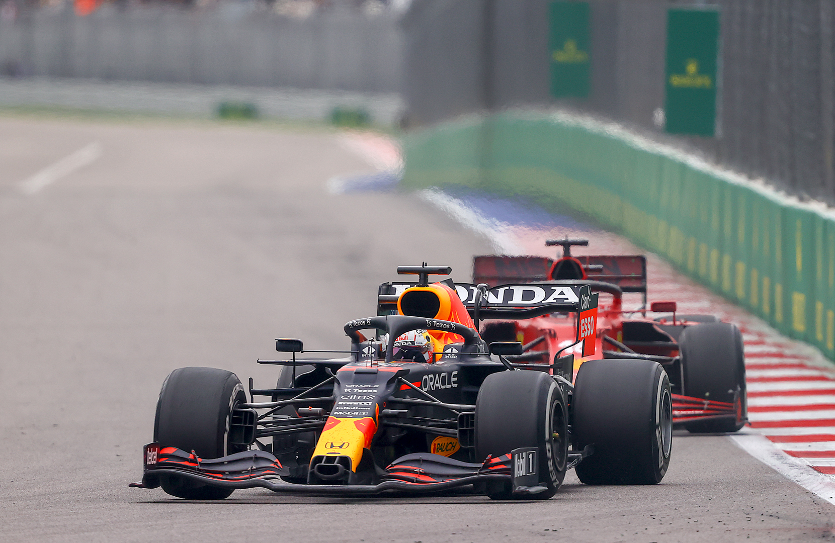 Max Verstappen of the Netherlands driving the (33) Red Bull Racing RB16B Honda during the F1 Grand Prix of Russia at Sochi Autodrom on September 26, 2021 in Sochi, Russia. (Photo by Bryn Lennon/Getty Images)