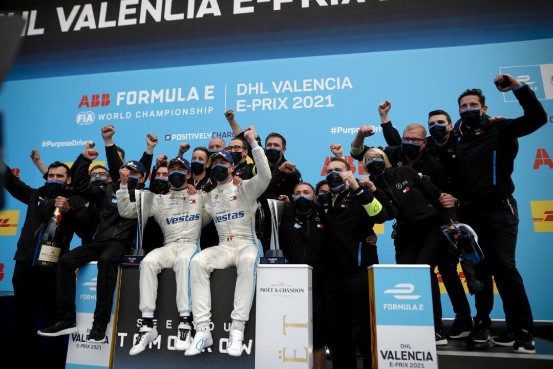 Double podium for the Mercedes-EQ Formula E Team in rain-affected Valencia spectacular: Nyck de Vries takes his second win of the season, with Stoffel Vandoorne charging from the back of the field to the podium