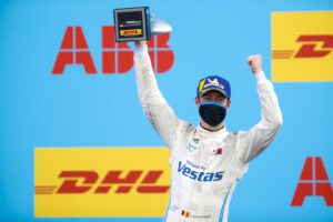 “I’m really surprised to have finished the race on the podium. Somehow it almost feels like I shouldn’t be here. The race was incredibly intense, and so much happened today. First, I was on pole, then all my qualifying times were cancelled and I had to start from the back of the grid. In the race, I had contact, went through the gravel and had to conserve energy towards the end. Our pace was good, and our strategy proved to be the right one. The laps after the final safety car restart were crazy. I was overtaking cars left and right that had run out of energy. But that’s what is so special about Formula E – one moment you’re down, the next you’re on the podium. You should never give up. Congratulations to Nyck on his win and the whole team on this double podium. We have been strong in the last few races, and that’s the way we have to carry on.”