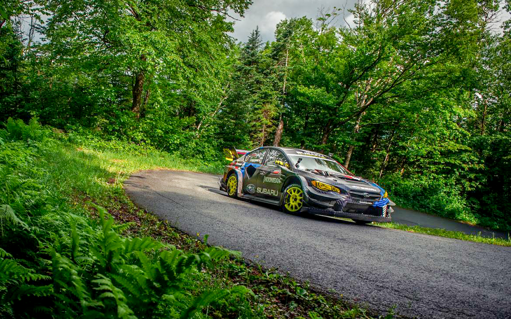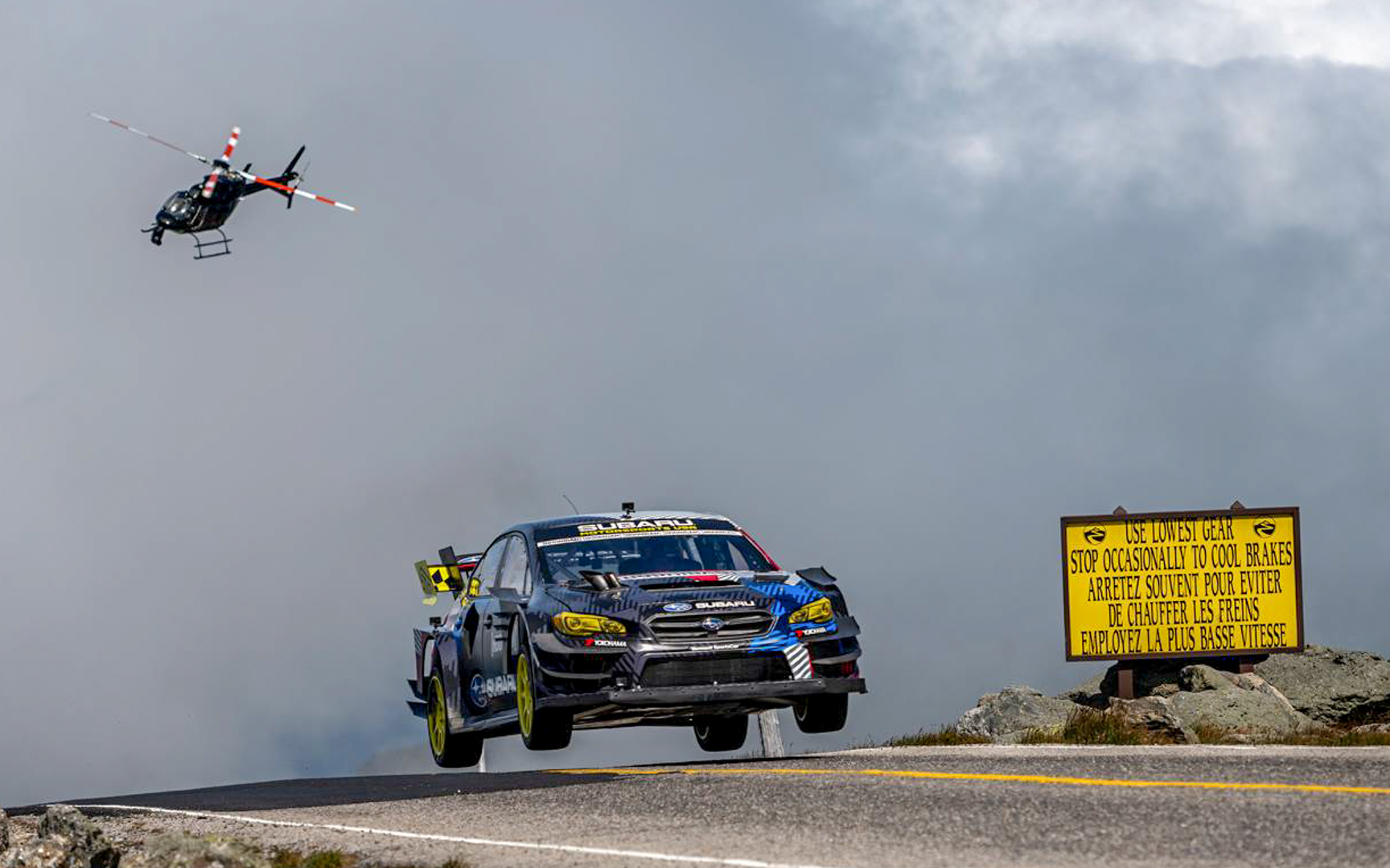 The highly developed aero package on the Airslayer STI provided a significant downforce advantage against the 600-horsepower WRX STI rally car used by Pastrana to set the 2017 mark. Along with a significant power bump, major suspension advancements and an ultra-light curb weight, the Airslayer was tailor-made for the wide-open mentality of hillclimbs. Still, the level of commitment displayed by Pastrana on the record run meant huge entertainment for the thousands of fans who lined the road at the spectator points along the roadway. The rally, rallycross and motocross star celebrated his history-making weekend with a Gymkhana-style smoky donut show on his return to the bottom of the mountain, giving American fans their first chance to see the Airslayer STI’s tire-shredding capabilities in person.