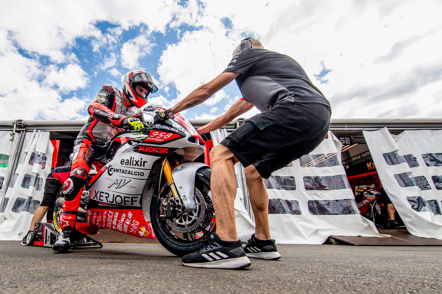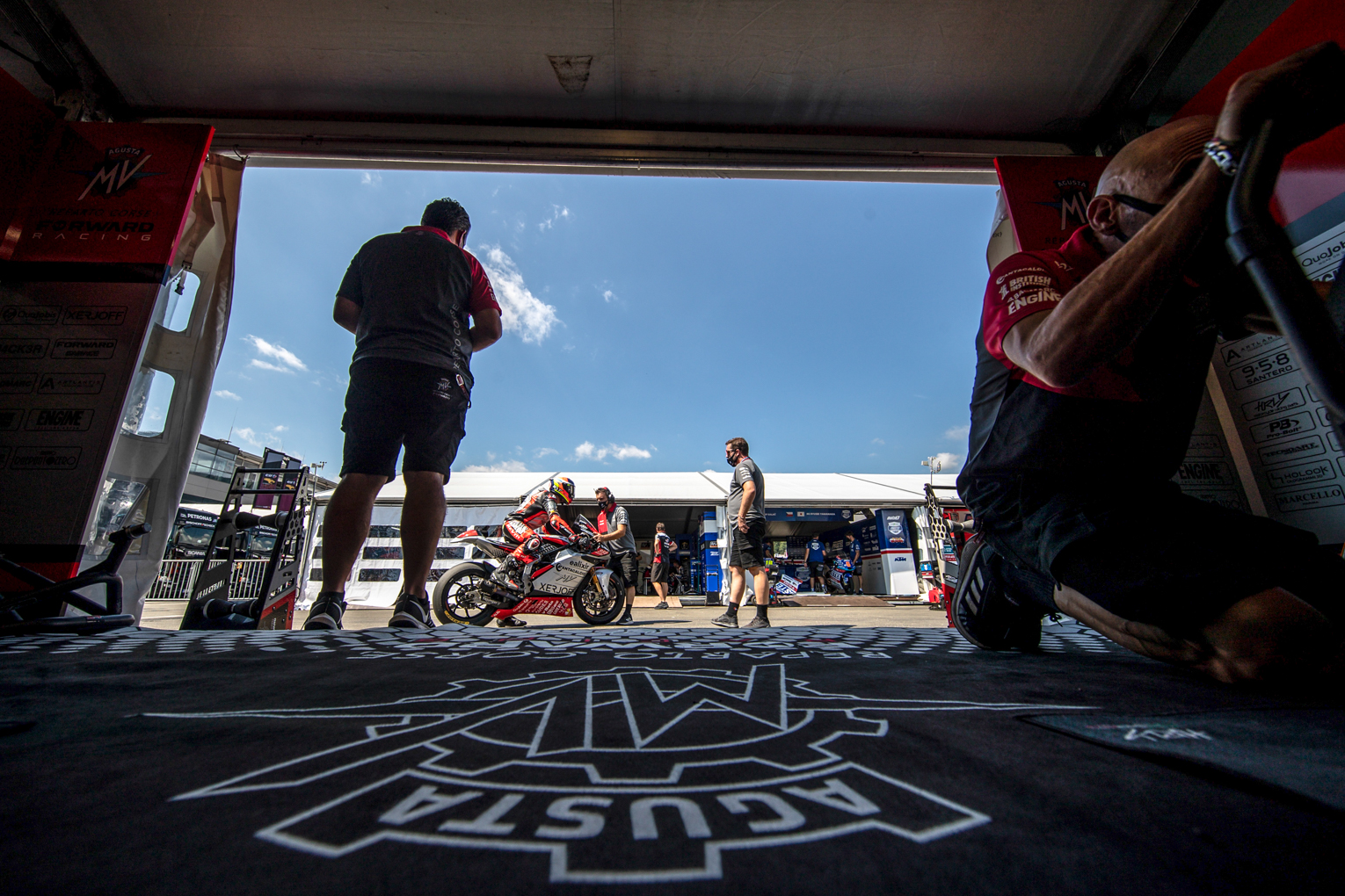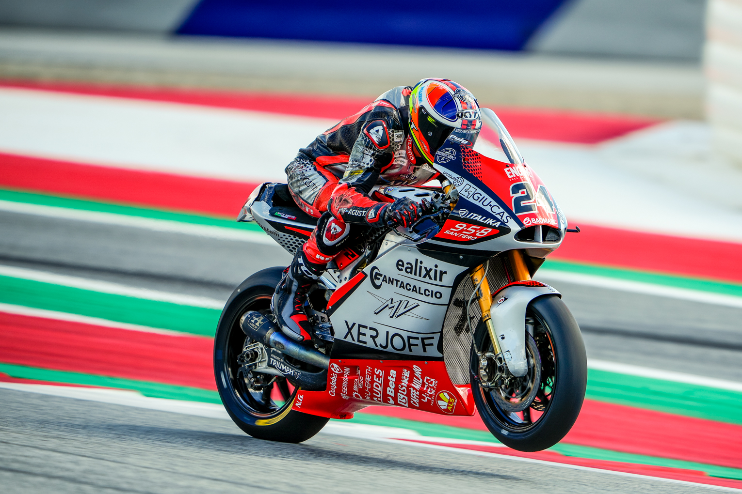 Sunday started with a heavy downpour at the Styria GP: wet conditions for the morning Warm Up where MV Agusta Forward Racing riders Baldassarri and Corsi were very comfortable on their F2 bikes, placing just over a tenth from the Top 10, in 12th and 16th respectively.