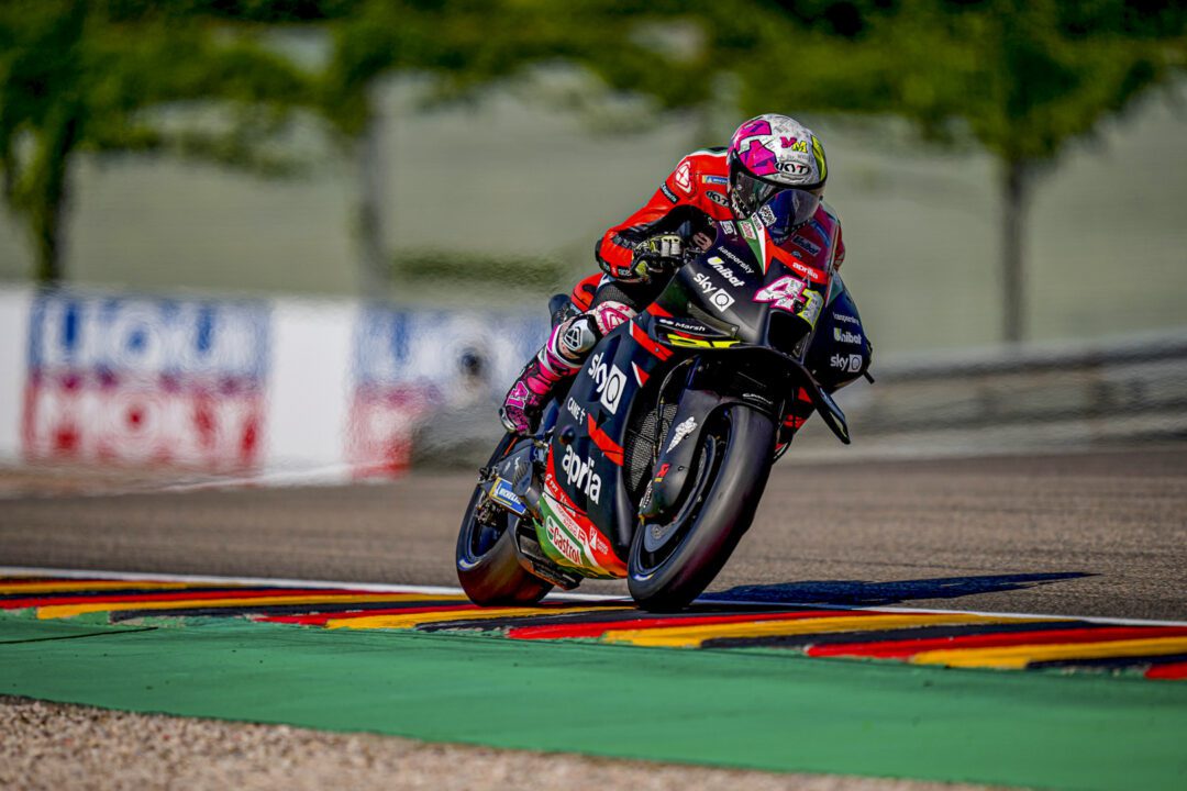 The 52 degrees Celsius on the asphalt (31°C air temps) did not keep the MotoGP riders from doing some interesting times already on the first day of practice at the Sachsenring. The hilly German track was the setting for yet another solid Friday for Aleix Espargaró, who has by now become a fixture in the top part of the rankings with his Aprilia RS-GP.