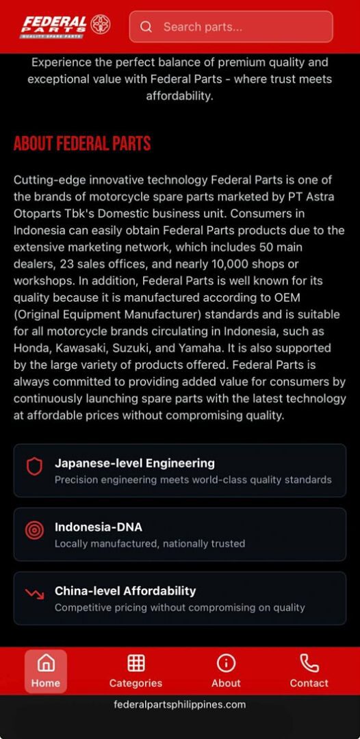 “Launching the Federal Parts website in the Philippines is about giving riders direct access to quality they can trust and prices they can afford. Filipino scooter and motorcycle owners deserve a platform that makes finding OEM‑standard parts simple, reliable, and transparent.