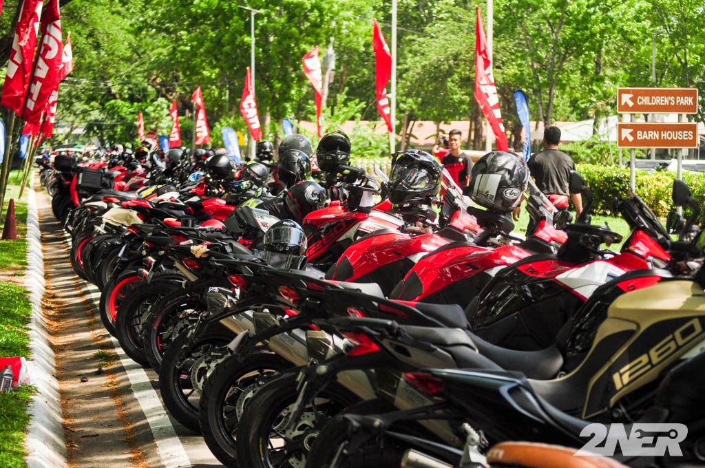 A 120-foot dome tent with a live cooking breakfast buffet awaited the participants at the Clark Parade Grounds. The venue was dressed up with Ducatilivery, Shell Advance and CDC flags. The S. Osmeña Street, from Ninoy Aquino Ave. up to R.C. Santos Street was closed and allocated as parking for the Ducatisti. Each Ducatista received a We Ride As ONE event shirt, Ducati sticker bundles and gift packs from Shell Advance.