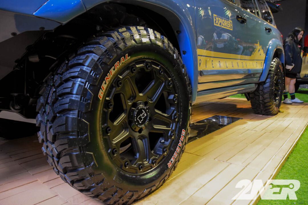 Mounted on 35×12.50R20 General Grabber X3 tires and Black Rhino COG wheels, the stance is aggressive yet stylish—an unmistakable silhouette that dares the terrain while dazzling the crowd.