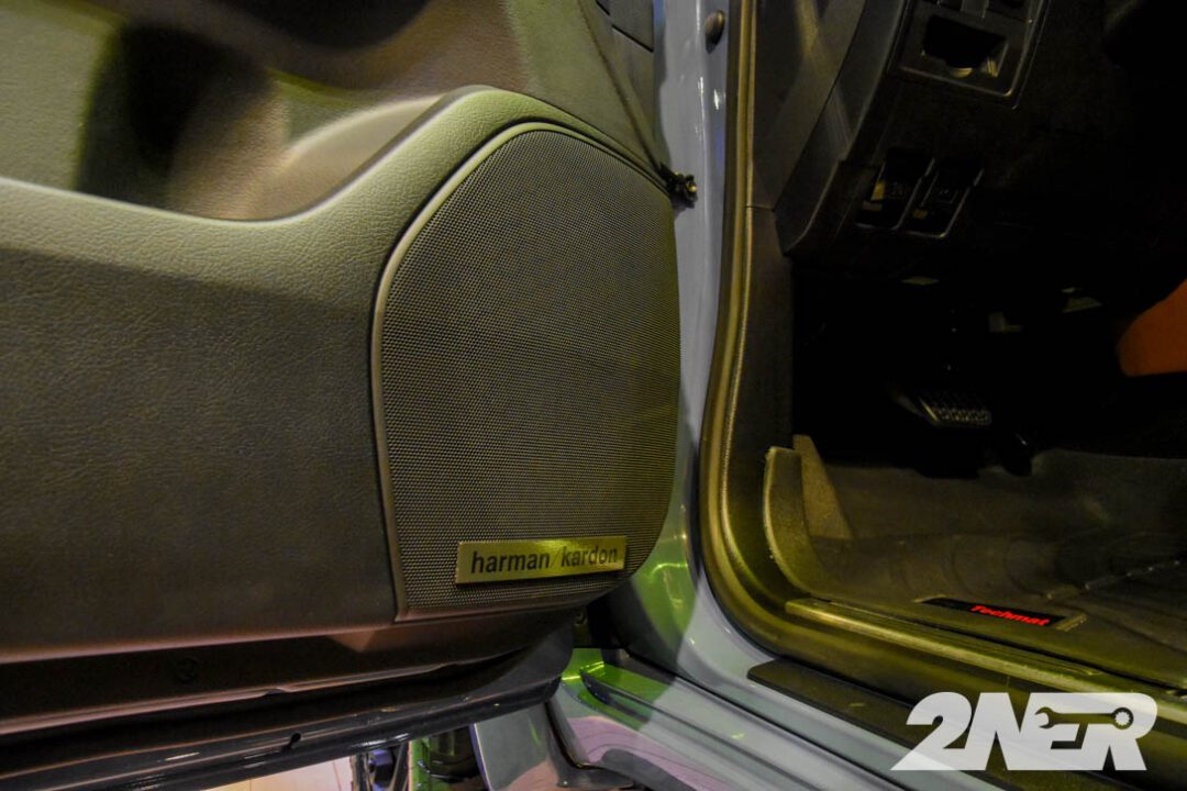 Inside, the LC200 is as rare as its exterior. A Pioneer head unit paired with Harman Kardon amplifiers and speakers transforms every drive into an immersive experience.