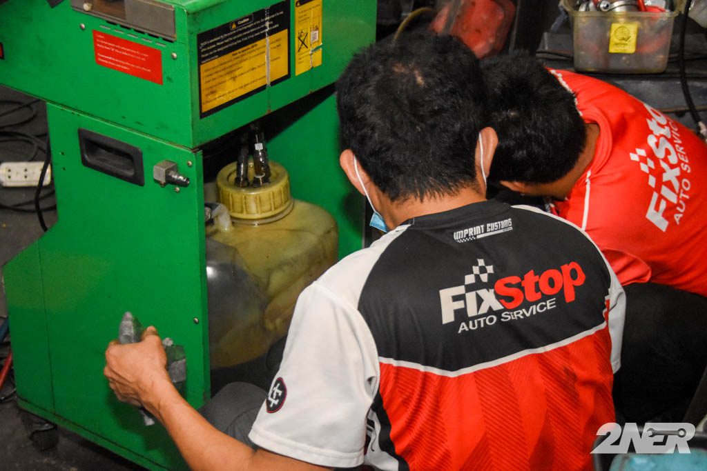 A special proprietary solution is run through the engine, bathing the engines’ internals in a special cleaning fluid that can remove sludge and other contaminants from the engine block, piston heads, camshafts and oil pan.