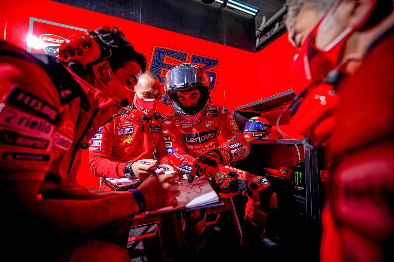 There will be two Ducatis on the front row, with Pramac Racing Team rider Jorge Martin second and Luca Marini third with the Desmosedici GP of the Mooney VR46 Racing Team