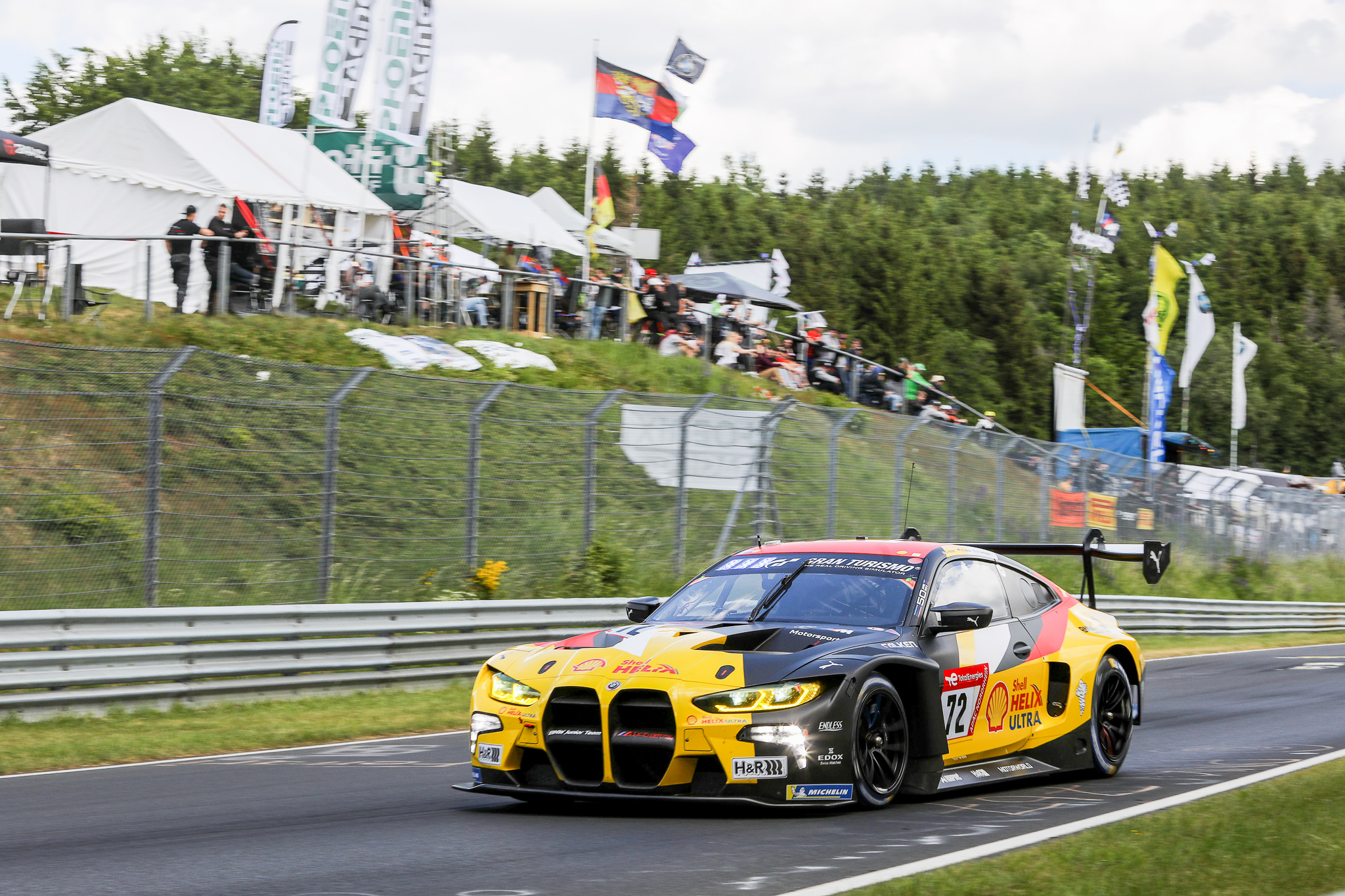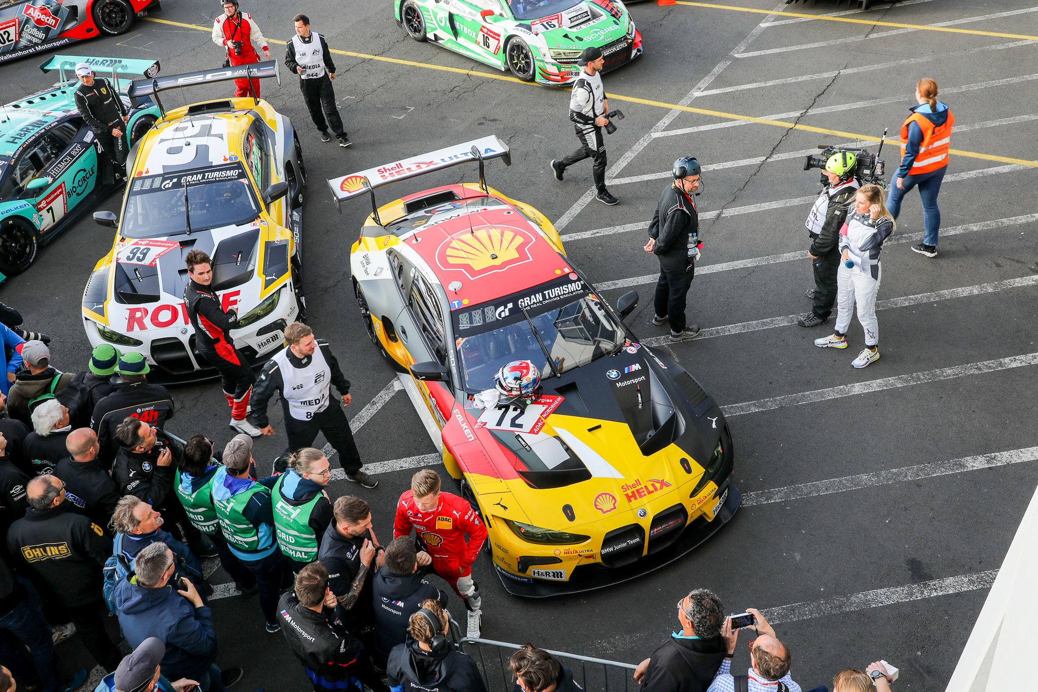 After last year’s pole position with the BMW M6 GT3, ROWE Racing has now marked the debut of the BMW M4 GT3 by making it to the front row of the grid in the 24-hour race at the Nürburgring (GER). Augusto Farfus (BRA) posted the second-fastest time of 8:10.640 minutes. In the #72 BMW M4 GT3, Dan Harper (GBR) claimed sixth spot for the BMW Junior Team – directly ahead of Christian Krognes (NOR) from the Walkenhorst Motorsport team in seventh position.