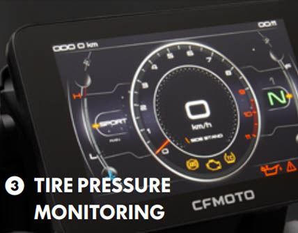 CFMOTO 800MT Cornering ABS system controls the power output and brake force when cornering to ensure maximum stability and grip even in sudden deceleration events.