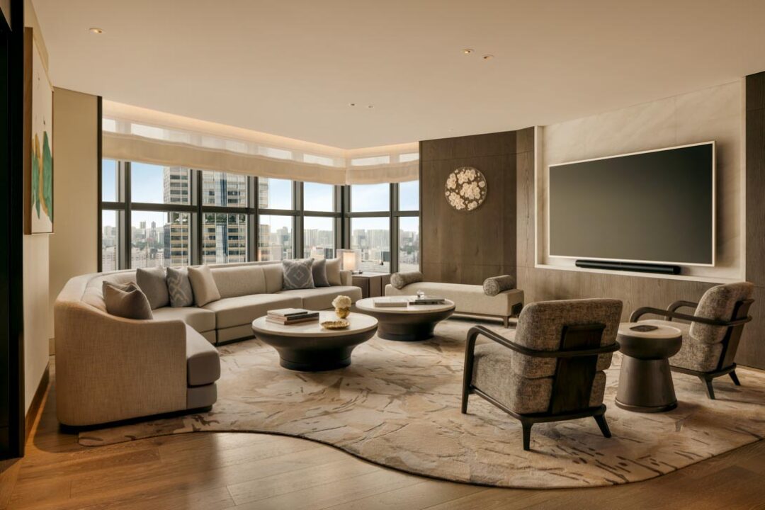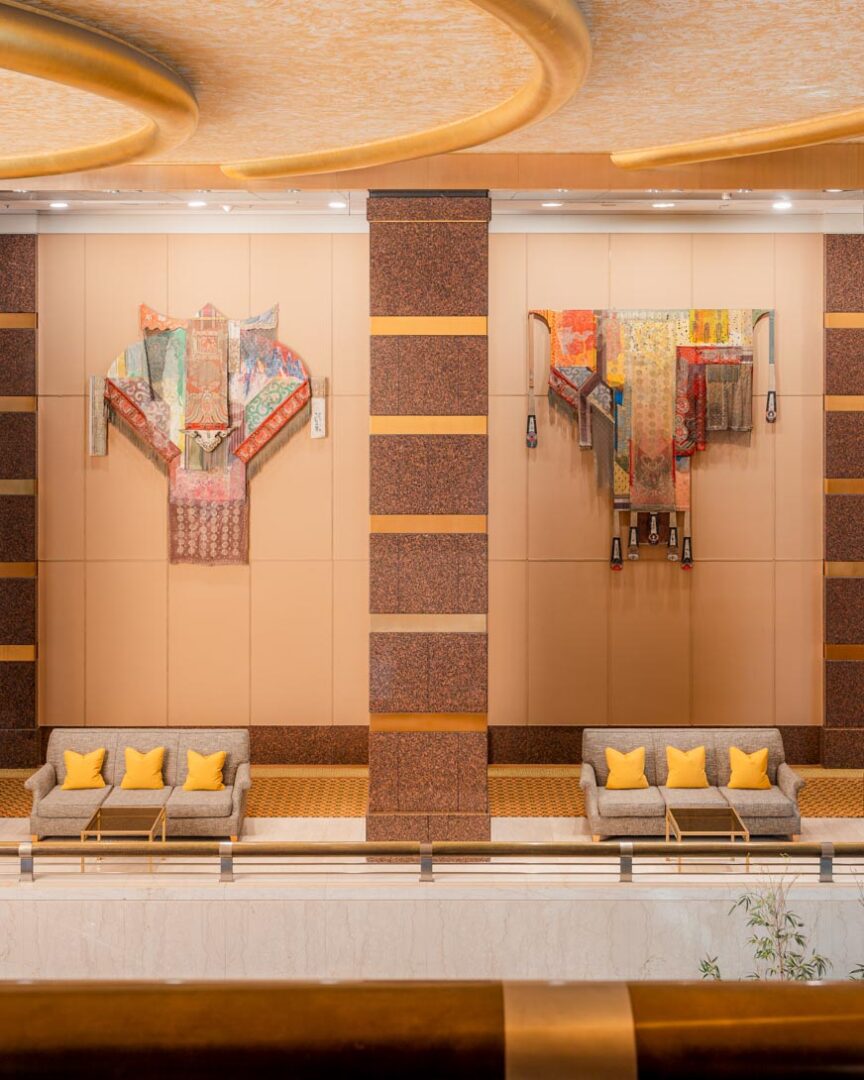 The moment guests step into the hotel’s Feng Shui-inspired lobby, they’re welcomed into a world where art and energy flow in perfect balance. A stunning spiraling chandelier evokes the fluidity of water, while the dramatic Turbulence sculpture by Rafael Barrios brings fire to life. A gold-plated ceiling shines with the brilliance of metal, earthy tones anchor the space beneath your feet, and towering bamboo trees bring the wood element to life—encapsulating the hotel’s connection to nature, culture, and spirit.