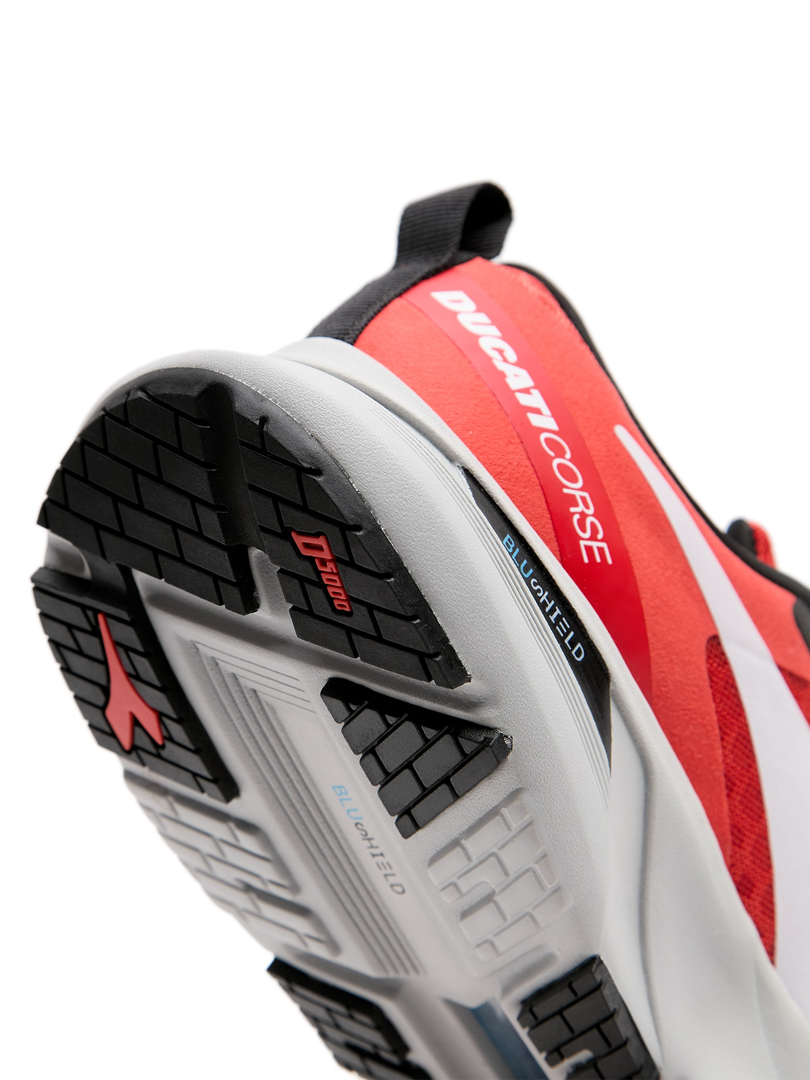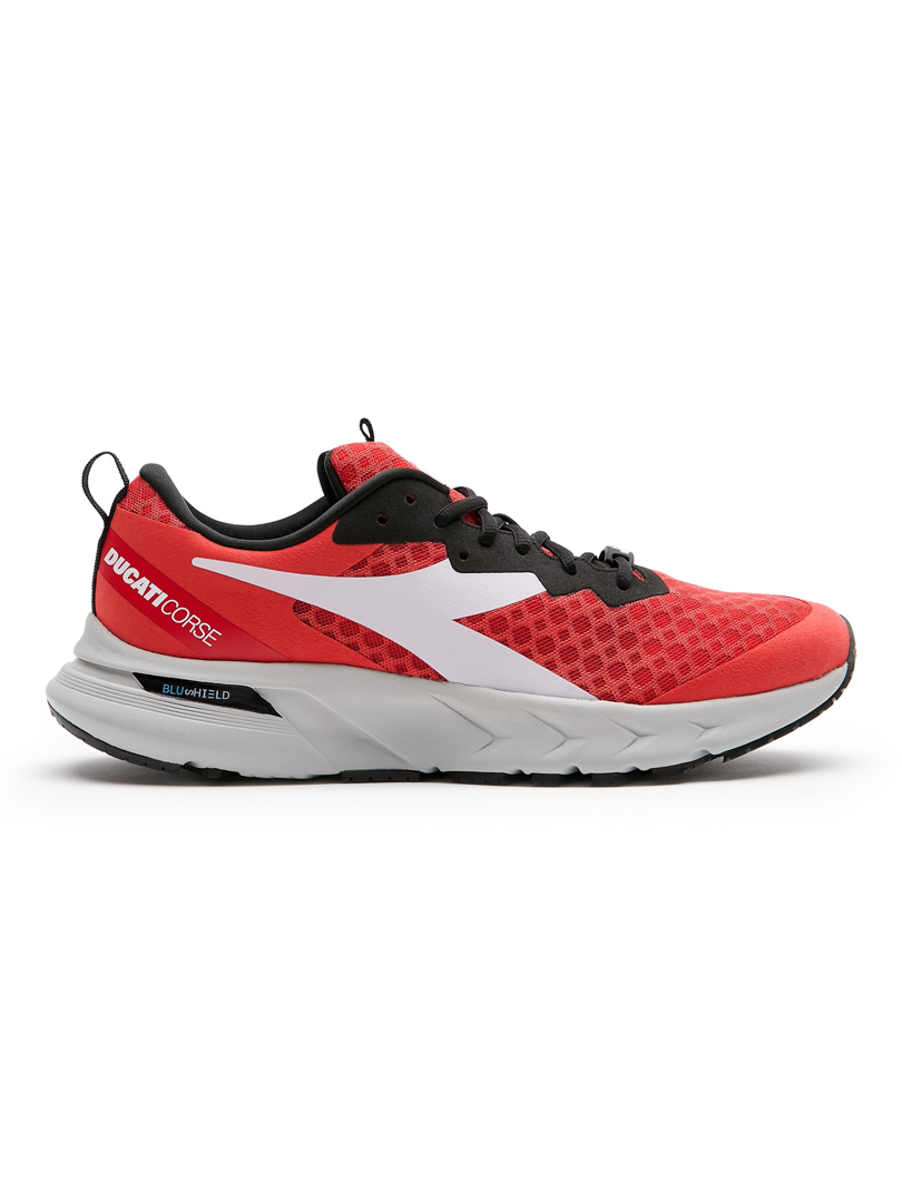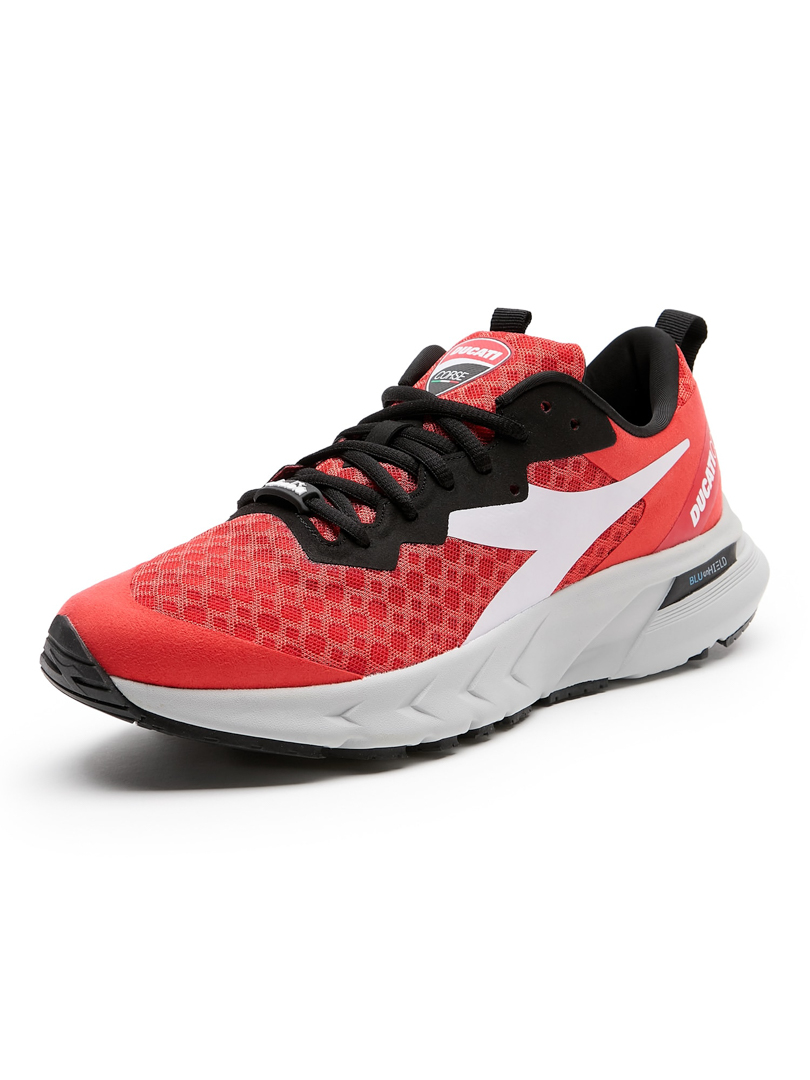 In addition to a series of polo shirts, shirts, t-shirts, sweaters, rucksacks, jackets and travel bags, diadora has created a customised version of its top running shoe for the Ducati Lenovo Team: Blushield Volo. Presented with an award at the Best Design Awards in the USA, Mythos Blushield Volo is the lightest style in the Blushield line and is now recognised, without doubt, as one of the Italian brand’s flagship models. Blushield Volo guarantees dynamic cushioning without compromising comfort. The Ducati red colour option represents a perfect union, encapsulating the spirit of the two brands.