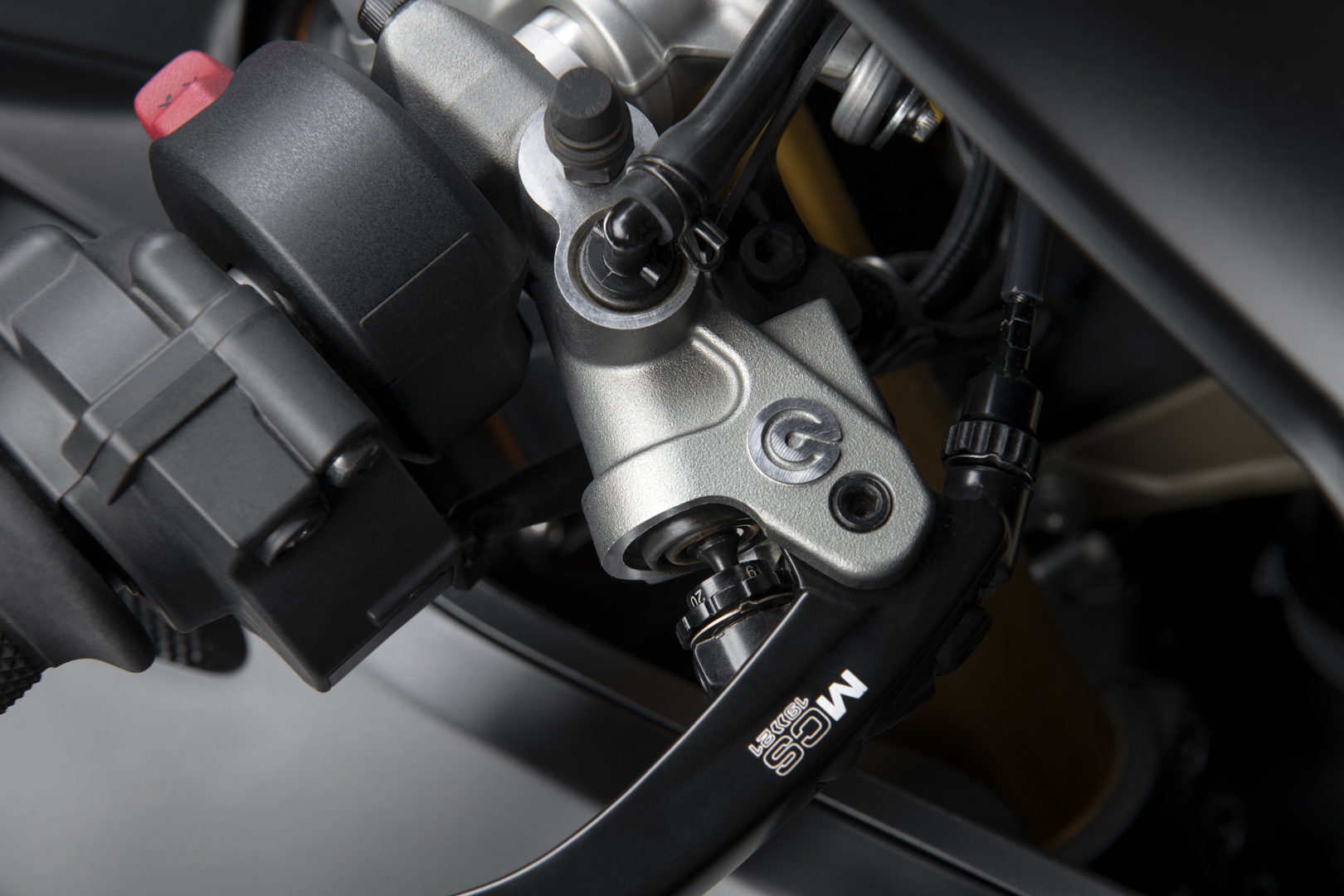 The front brake lever is equipped with a “remote adjuster” device, which allows you to adjust its position by acting on a knob on the left grip, as is the case on racing bikes. Finally, on the “SP2” version the brake and clutch levers are milled at the ends to reduce air resistance.