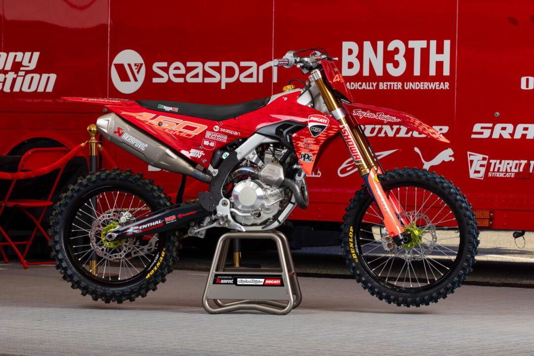 The agreement was announced on January 10, 2025 at the first round of the AMA Supercross 2025 at the Angel Stadium in Anaheim, the traditional opening of the American indoor championship, with the presence of Tony Cairoli, rider and Ducati Brand Ambassador, and Paolo Ciabatti, Ducati Corse Off-Road General Manager, along with other Ducati and Ducati North American representatives. The American team displayed in the paddock a Desmo450 MX bike in ‘proto’ version with special graphics created by the famous californian desiger.