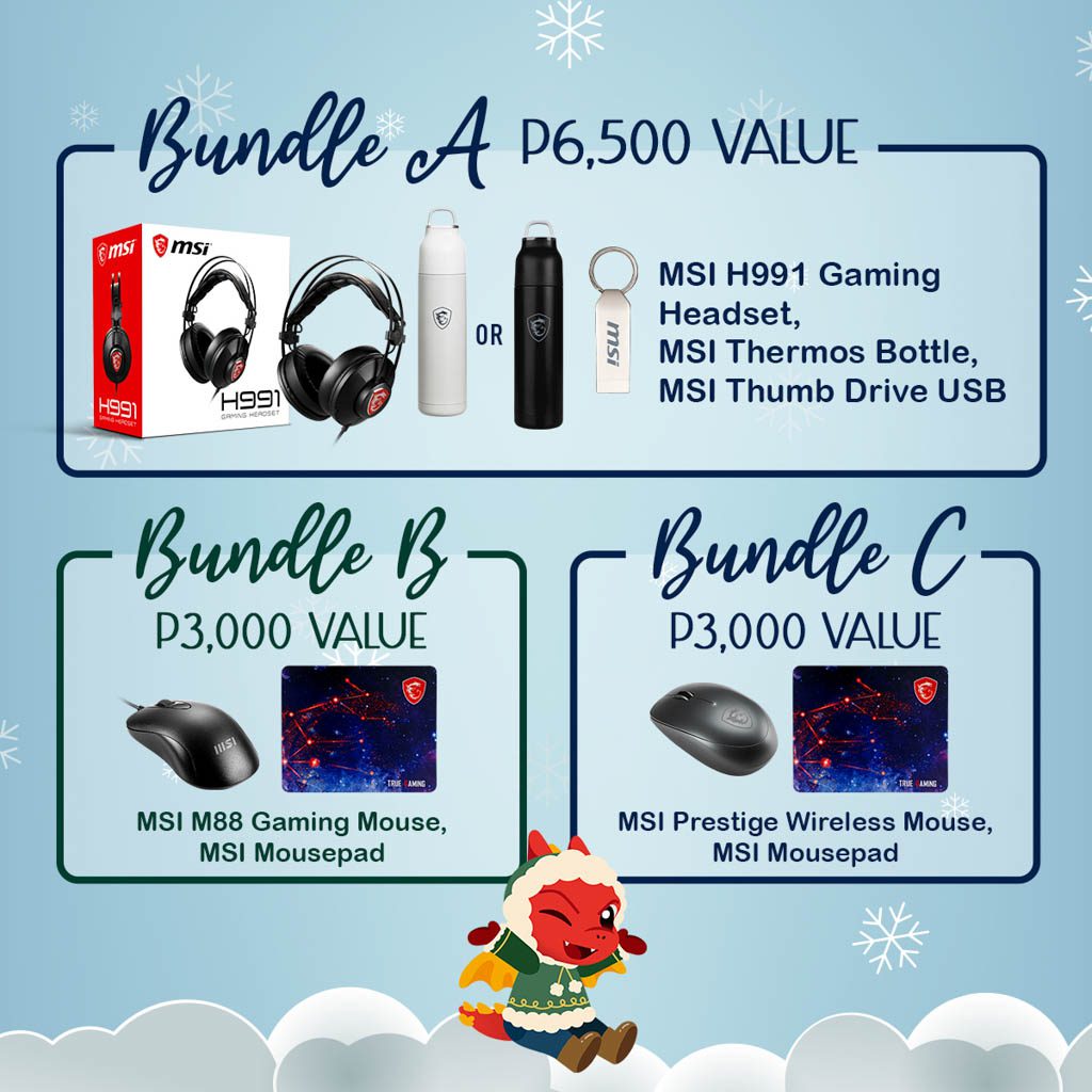 May your presents be many, and your troubles be few as for every purchase of the participating laptops, you can get exclusive freebies from various gaming bundles including an MSI H991 Gaming Headset, MSI gaming mouse, MSI Thermos Bottle, and many more!
