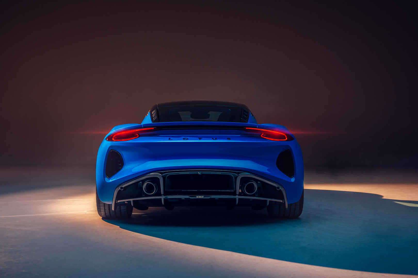At the rear, the Lotus wordmark dominates the integrated bumper, above a body coloured panel that’s clearly inspired by the rear of the Evija. At each end is an exit vent for air from the wheel arch. Each corner has a flat C-shaped LED light cluster linked by a slimline high-level brake light. Below is a black section housing twin exhaust pipes either side of the number plate and with an air diffuser underneath to aid downforce.