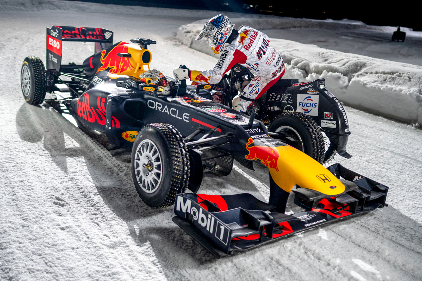 Although he’d never driven an F1 car on ice before, the Red Bull Racing driver sped through a circuit built out of ice on specially designed Pirelli spiked tyres, with his helmet and race car carrying the number ‘1’ for the very first time. He went on to say: “This was my first time on the ice with a Formula One car and I’ve been really looking forward to it. It was very interesting and it’s quite slippery, so you have to be careful. Everything is very cold, including the brakes, and racing cars are obviously not designed to drive on the ice, which makes it even more difficult, but it was a lot of fun.”