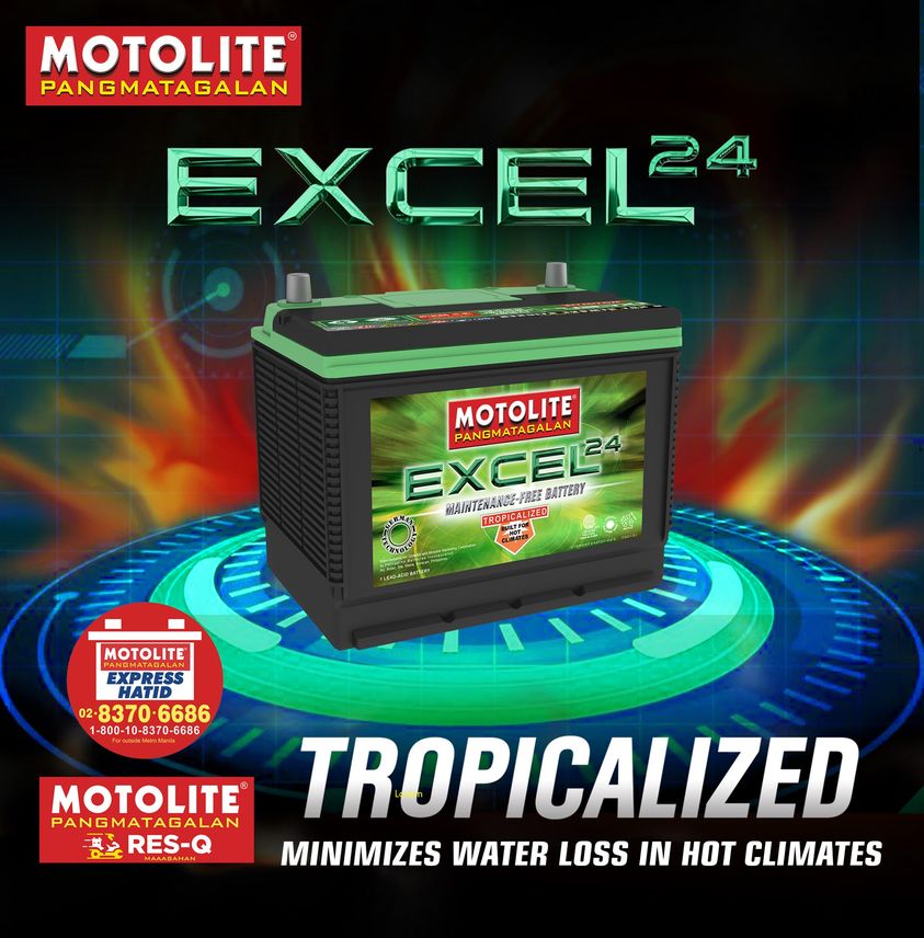 The new Motolite Excel series has thick, rigid, and full-framed positive and negative grids. With wire architecture that helps optimized mechanical endurance, high temperature corrosion resistance, and current delivery. The series boasts of specially formulated paste to increase cranking capability and cycle endurance. The new cell design increases mechanical durability and prevents internal short-circuits.