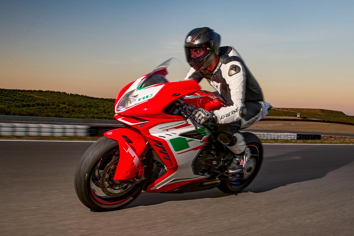 Just think of the best Supersport of the moment, and dress it up in MV Agusta’s official racing colors. You’re ready to ride the F3 RC, the sportiest of the range, ready to burn the tarmac of the next racetrack. Engine, frame, aerodynamics: everything on this bike was designed for maximum performance without compromise. The front forks have an advanced titanium nitride (TiN) coating to reduce friction, wheels that are 10% lighter, resulting in a moment of inertia reduction of 7%. Whether it’s racetrack tarmac or that of a scenic country road, riding sensations remain the same.