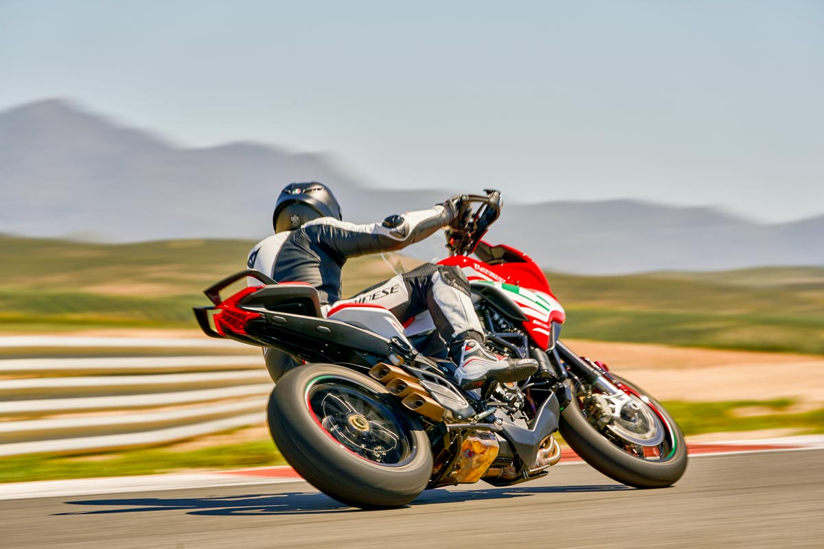 The renewed graphic elements and the color scheme, clearly remind of the bikes racing in the Moto2 and Supersport championships. The ample use of premium materials serves both aesthetics and function: for instance, the front forks have an advanced titanium nitride coating to reduce friction, the forged wheels reduce unsprang mass and improve maneuverability; carbon fiber also enhances the design of the Dragster, making it unique among the medium capacity naked. The 800cc three-cylinder engine, already an absolute industry benchmark, is pushed even further the racing kit, which includes an SC Project titanium exhaust and a central unit with optimized mapping, as well as a sleek looking see-through clutch cover.