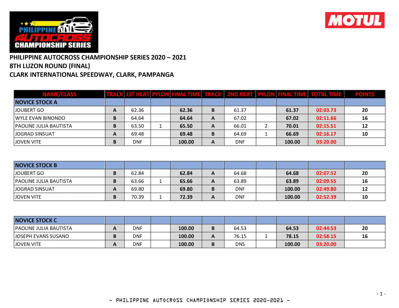 The 2022 PACS race season is sponsored by Motul.