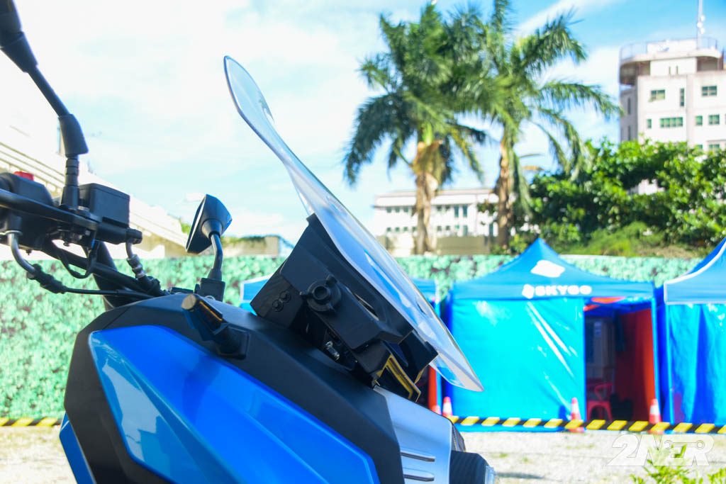 An adjustable windscreen protector rounds out the on and off-road features of the Skygo KPV150.